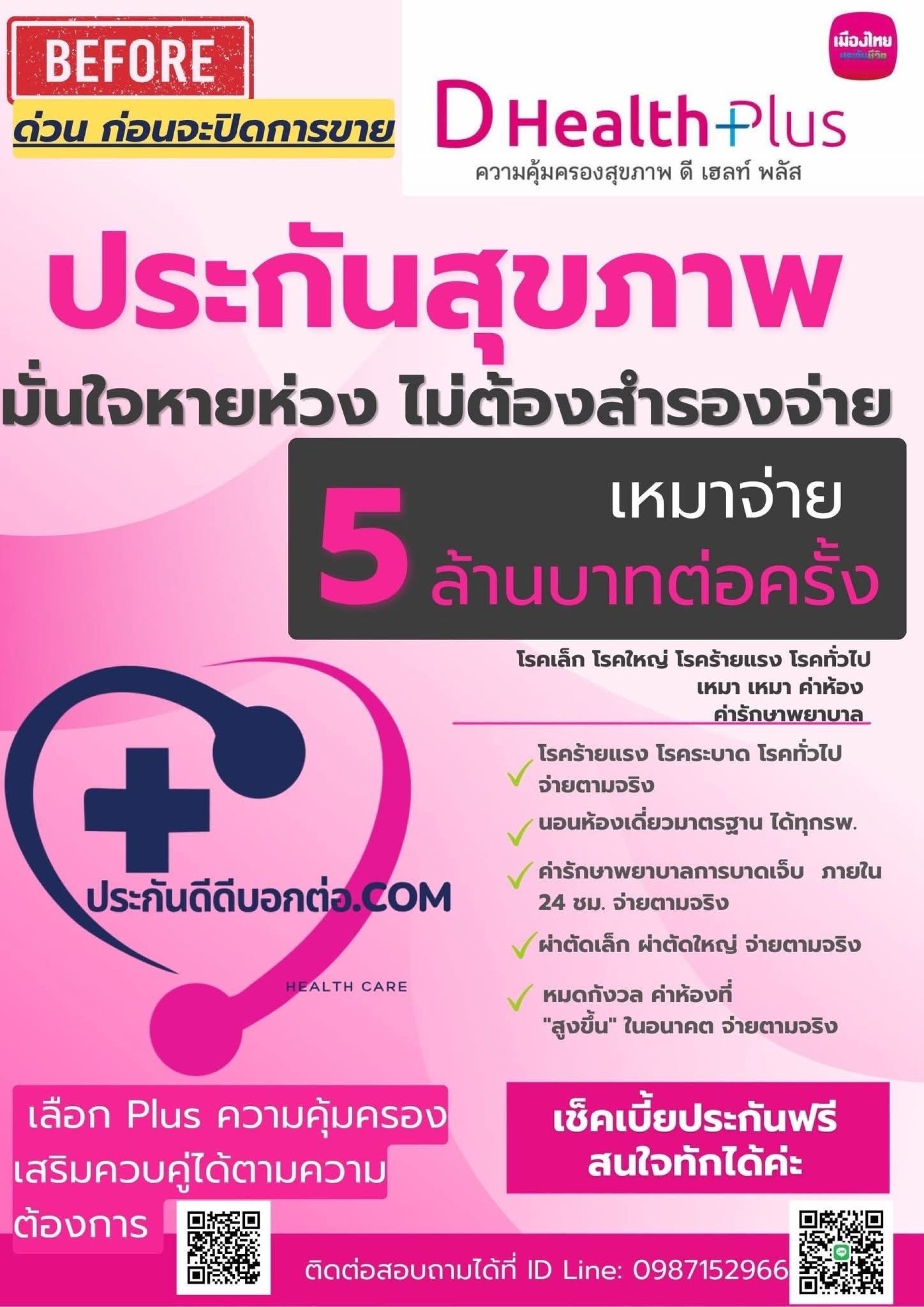 ดี เฮลท์ พลัส (D Health Plus) ความคุ้มครองคุ้มๆ สมัครด่วนก่อนปิดรับ